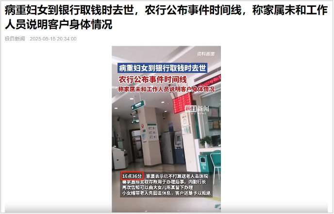社会公共动态——重病老人在银行取钱去世,银行如何破解特殊场景的声誉危机丨金舆之言